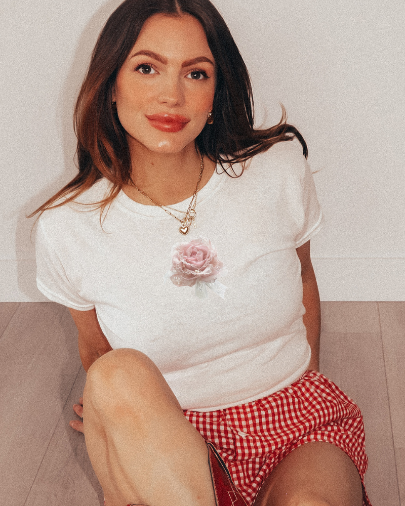 Vintage-Inspired Pink Rose Baby Tee | Coquette Soft Girl Aesthetic